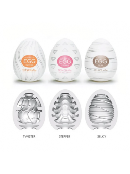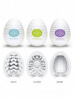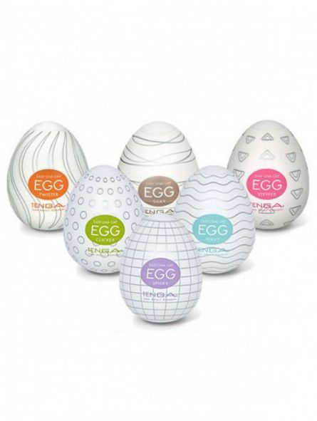 Los huevos Tenga Egg son de lo más innovador y original en cuanto a masturbación masculina. Se trata de unos singulares huevitos de la mejor tecnología japonesa con textura y estrías diferentes que le darán a tu miembro las más suaves y ricas sensaciones gracias a su material de elastómetro de grado médico. Por fuera parecen ser unos inofensivos huevitos, pero al abrirlos y quitarles la "cáscara", revelarán su interior texturizado. Son 6 diseños diferentes que podrás probar y disfrutar. Aunque su material es de la mejor calidad, no se recomienda reutilizar.